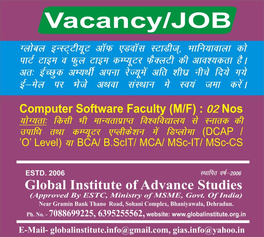 Urgently Required Software Faculty (Male/Female)-Fresher May Also Apply